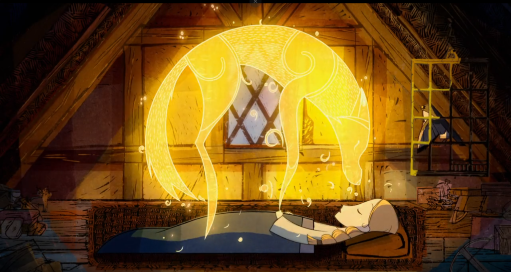 Отдельно стоит сказать о пространстве мультфильма. Так, мы можем увидеть, как визуальное изображение отражает мифологические аспекты.